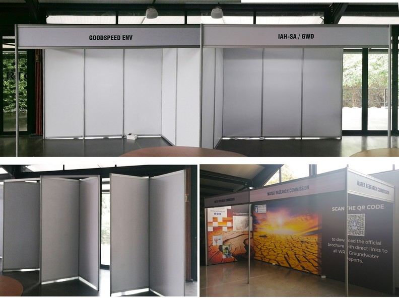 6x2 stand for Water Research Commission. 3x2 stand for Goodspeed ENV and 3x2 stand for IAH-SA / GWD. 3 shell scheme pods for posters.